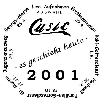 11.02.01 Familien-Gottesdienst 11.03.01 Familien-Gottesdienst 17.03.01 Kommunionkinder-Gottesdienst 23.03.01 Ökumenischer Jugendkreuzweg [ ev. Liebfrauenkirche ] 28.04.01 Pfadfinder-Gottesdienst ( Georgs-Messe ) 29.04.01 Erstkommunion ( 1. Gruppe ) 06.05.01 Erstkommunion ( 2. Gruppe ) 01.06.01 Pfingstnovene 17.06.01 Ev. Gottesdienst zum Gemeindefest [ Otternhagen ] 24.06.01 Ökumenischer Gottesdienst [ Marktplatz, Neustadt ] 11.08.01 Ökumenischer Schulanfänger-Gottesdienst 01.09.01 Kommunionkinder-Gottesdienst 09.09.01 Familien-Gottesdienst ( Gemeindefest ) 22.09.01 Hochzeit Marc & Heidrun 30.09.01 Ernte-Dank-Gottesdienst 28.10.01 Familien-Gottesdienst 11.11.01 Gottesdienst ( Martins-Fest ) 02.12.01 Familien-Gottesdienst ( 1. Advent ) 09.12.01 Familien-Gottesdienst ( 2. Advent ) |